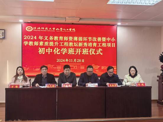 11月28日上午,2024年义务教育师资薄弱环节改善暨中小学教师素质提升工程教坛新秀培育工程项目初中化学班开班仪式在化学楼407会议室举行。学院党委书记吴志伟、院长曹俊涛、副院长王红军、项目负责人沈久明及研修班班主任章艳、万榕出席开班仪式。开班仪式由王红军主持。