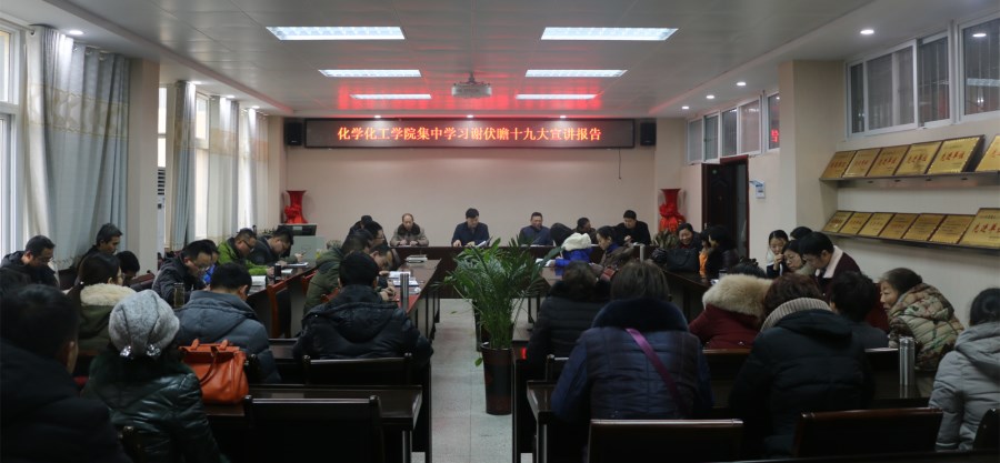 元月2日下午,8040威尼斯在化学实验楼会议室集中学习省委书记谢伏瞻在河南师范大学宣讲十九大精神的报告。院长井强山、副院长骆定法、归风铁、刘鹏,党委副书记吴志伟与全体教职工共同聆听了此次报告。