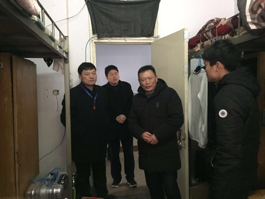 1月27日下午,8040威尼斯院长井强山、党委书记郭鹏,深入学生宿舍看望学生。他们到学生宿舍了解学生离校情况,计划离校时间和离校交通工具,叮嘱同学们一定要注意安全。他们到学校送站现场去送离校同学上车。