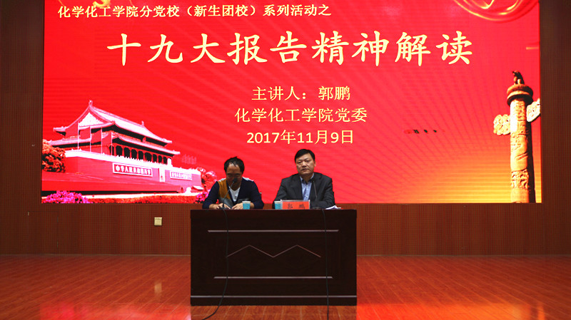 11月9日,8040威尼斯党委书记郭鹏在逸夫楼报告厅与该院2016、2017级学生座谈交流,为大家深度解读十九大精神。