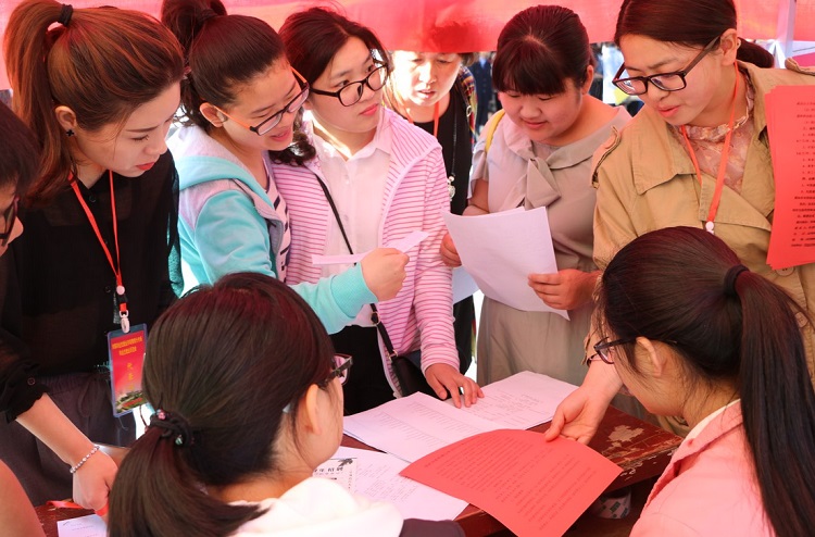 招聘现场,人来人往,秩序井然。用人单位通过发放宣传页,张贴海报等形式向毕业生展示单位规模、人文地理环境及薪资待遇等方面的信息。大规模的招聘需求,用人单位的精心准备,引来大批毕业生参与其中。毕业生详细向用人单位提出问题,用人单位耐心的回答大家关于招聘要求、薪资待遇等方面的提问。招聘会现场,我院领导老师与相关招聘单位进行详细交谈,我们的志愿者也热心帮助用人单位及毕业生做好服务。